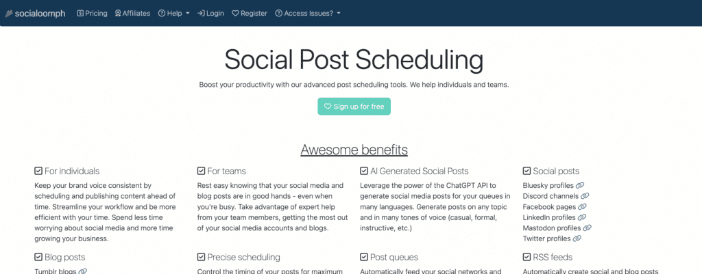 SocialOomph is known for its affordability and ease of use for the non-techie, a huge plus for many nonprofit social media managers.