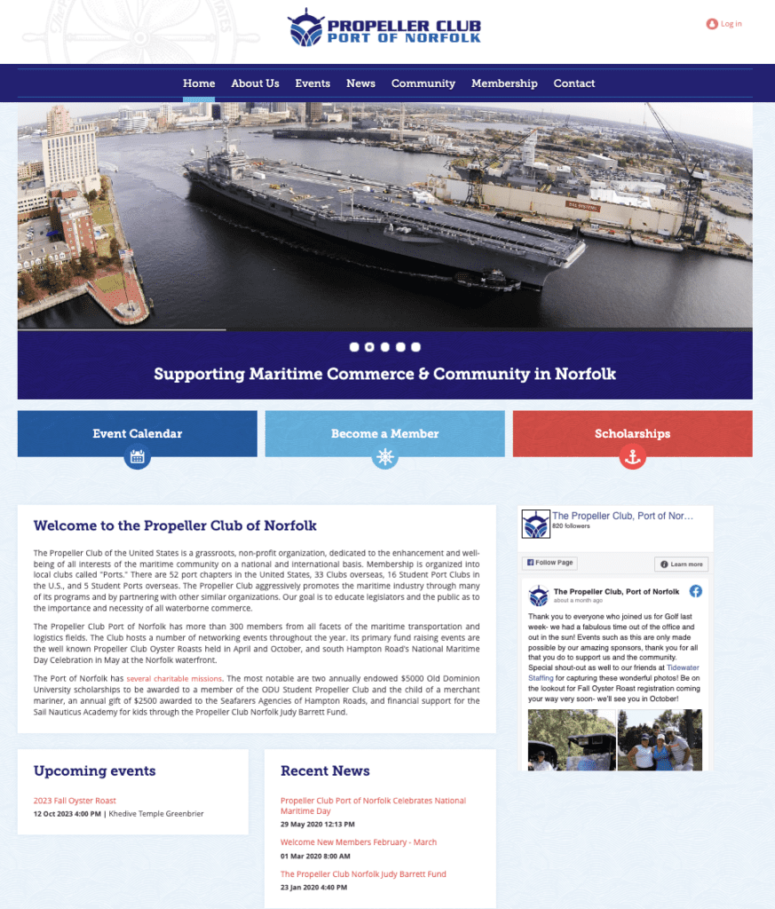 Why we love it: The Propeller Club of Norfolk’s website has a big imagery slideshow highlighting their maritime passion. There are super easy to navigate buttons for everything a member or hopeful member would need. Plus they highlight their Facebook page through a widget right on their homepage!