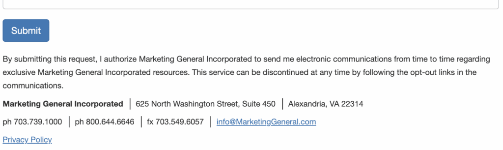 Or include an automatic consent statement upon completion of your lead magnet form, seen here: